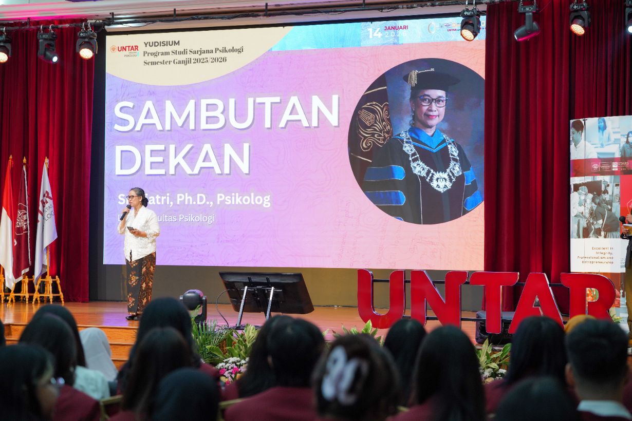 Dalam sambutannya, Dekan Fakultas Psikologi Untar menegaskan bahwa FPsi Untar merupakan wadah keberagaman yang mendorong seluruh sivitas akademika untuk maju bersama dan berbakti bagi bangsa dan negara. Para lulusan diingatkan untuk saling menghormati, menjaga etika, serta menggunakan media sosial secara bijak. Beliau juga menekankan bahwa belajar merupakan proses seumur hidup dan para lulusan diharapkan tidak pernah berhenti mengembangkan diri.