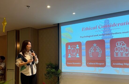 Agustina, M.Psi., Psikolog sedang memaparkan materi mengenai Human-Centered Well-Being: Psychological Perspective on Culture and Society)